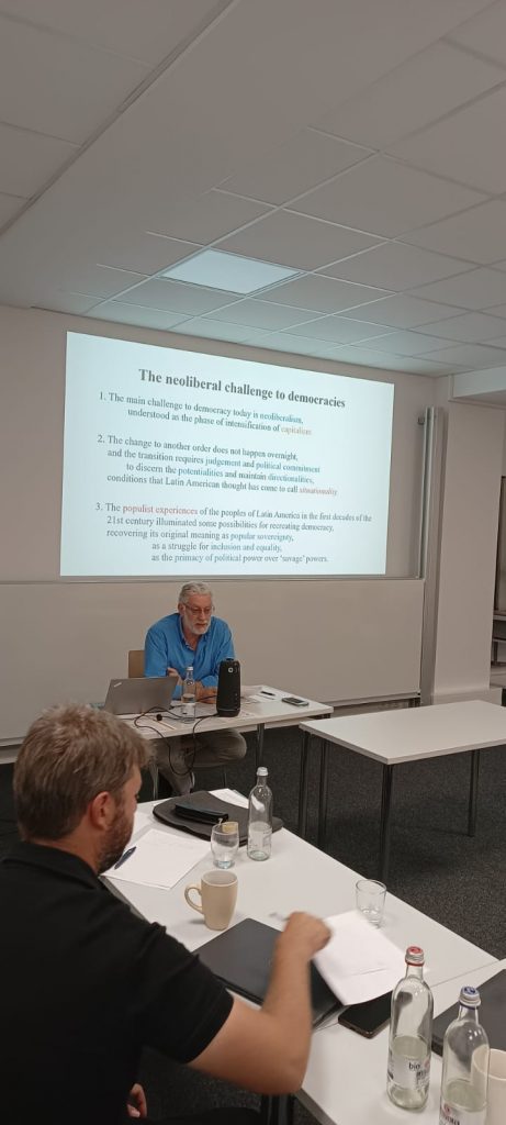 Además de participar en seminarios de posgrado y dictar conferencias (“Moral discourses and stateness: an approach to the emergence of radical populisms. The Argentinean case» dictado el 15 de enero), el Dr. Vezzosi coorganizó junto a la Dra. Lea Watzinger el workshop internacional “Dynamics of inclusion and exclusion. Challenges to democracy in Europe and Latin America: populism, authoritarianism and neoliberalism in the early 21st century”, llevado a cabo los días 24 y 25 de julio en Passau.