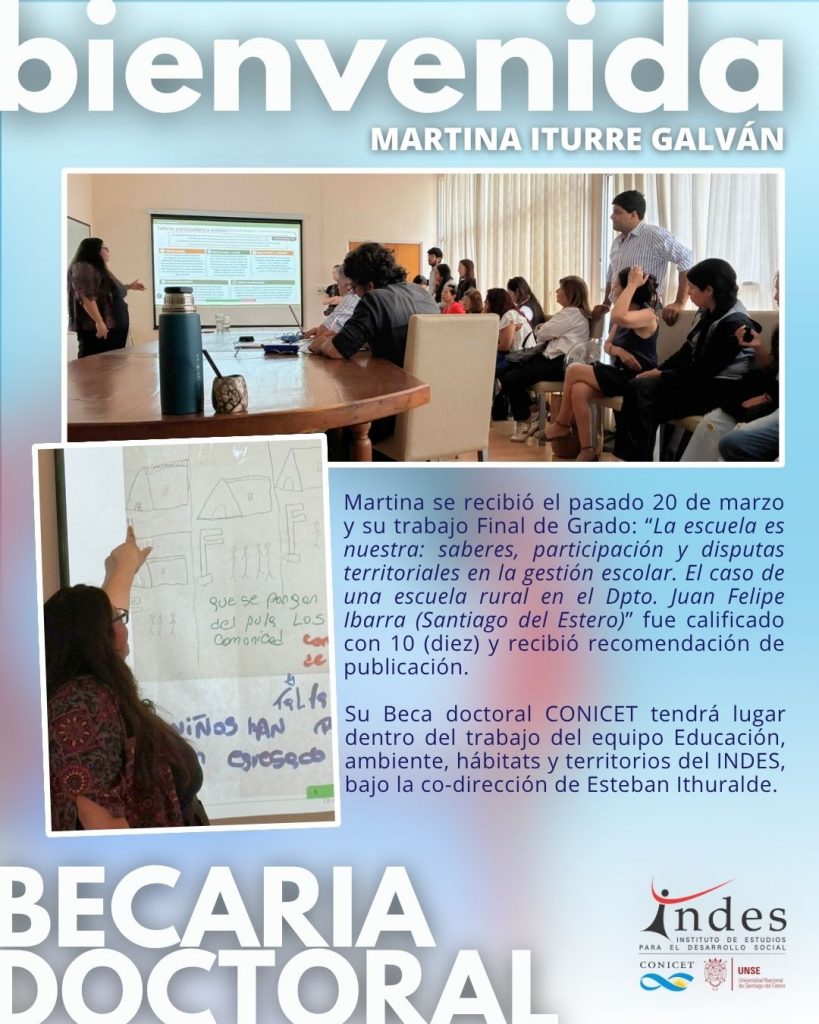 Con gran entusiasmo, el Instituto de Estudios para el Desarrollo Social (INDES) le da la bienvenida a Martina, quien se incorpora como nueva Becaria Doctoral del CONICET.