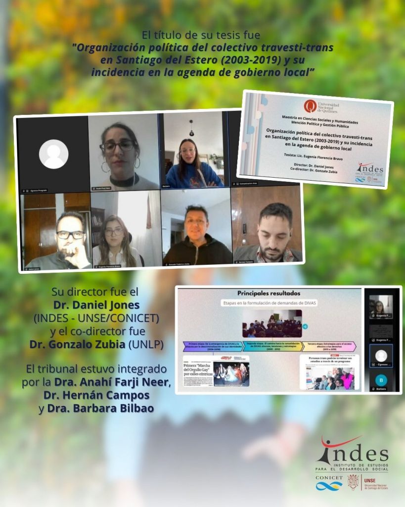 📝 El título de su tesis fue «Organización política del colectivo travesti-trans en Santiago del Estero (2003-2019) y su incidencia en la agenda de gobierno local», y su defensa fue aprobada con un diez como nota.