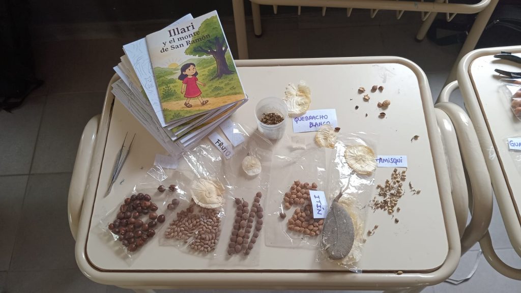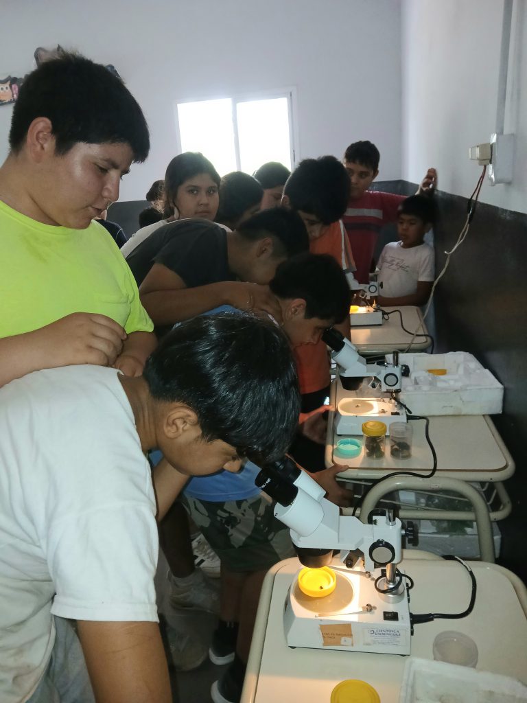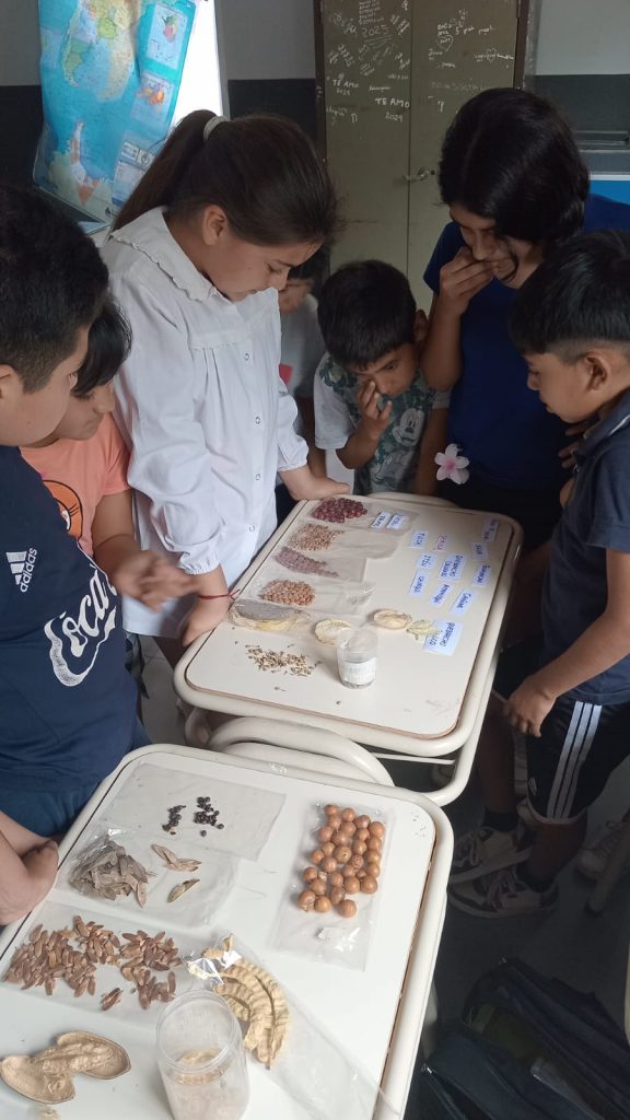 El Taller consistió en una exposición del tema, construyendo el concepto de manera participativa con los alumnos (entre 7 y 13 años). A continuación, se realizó una búsqueda activa de la biodiversidad en las inmediaciones de la escuela con lupas de mano y frascos, para observarlas bajo lupas estereoscópicas. Además, hicieron un reconocimiento de los frutos y semillas de las especies vegetales más frecuentes de la región. Posteriormente, plantaron un árbol entre todos en el patio de la escuela y el taller finalizó con la entrega de un presente personalizado sublimado con especies nativas y un libro de cuentos sobre la importancia de respetar las formas de vida silvestres y la relación con el monte nativo, facilitado por la Dra. Constanza Urdampilleta.
